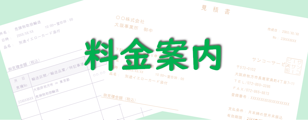一般軽貨物料金凡例【法人様向け】<2023年9月現在>